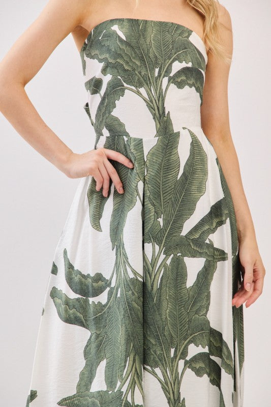Rosemary Sleeveless Back Tie Tropical Print Wide Leg Jumpsuit Black