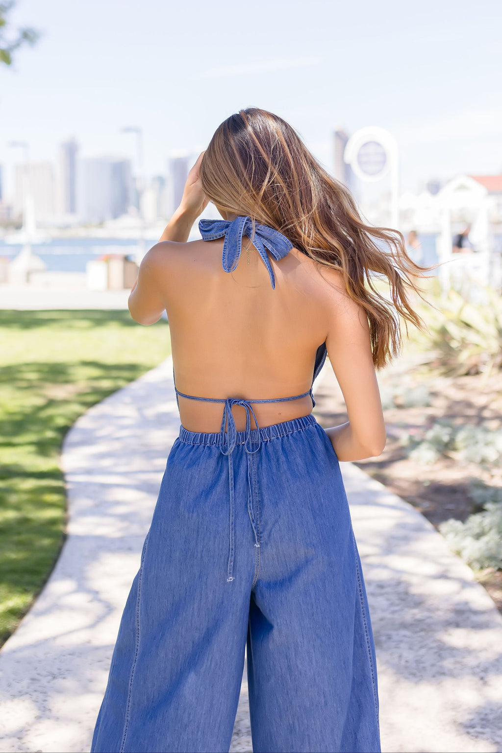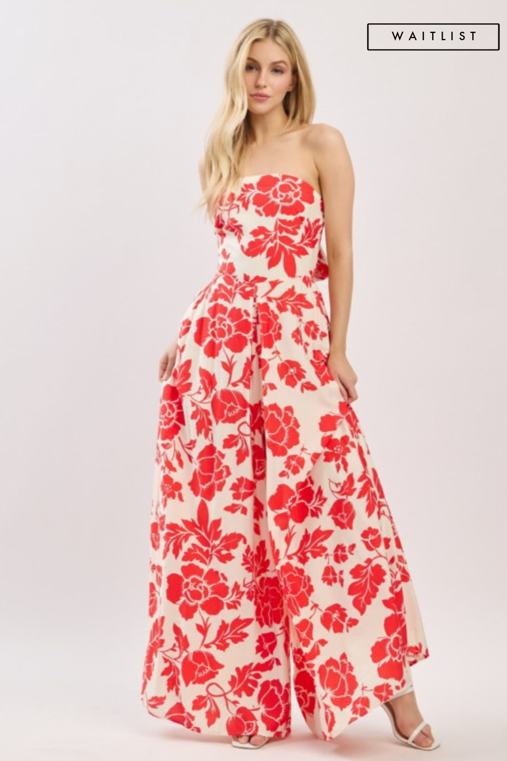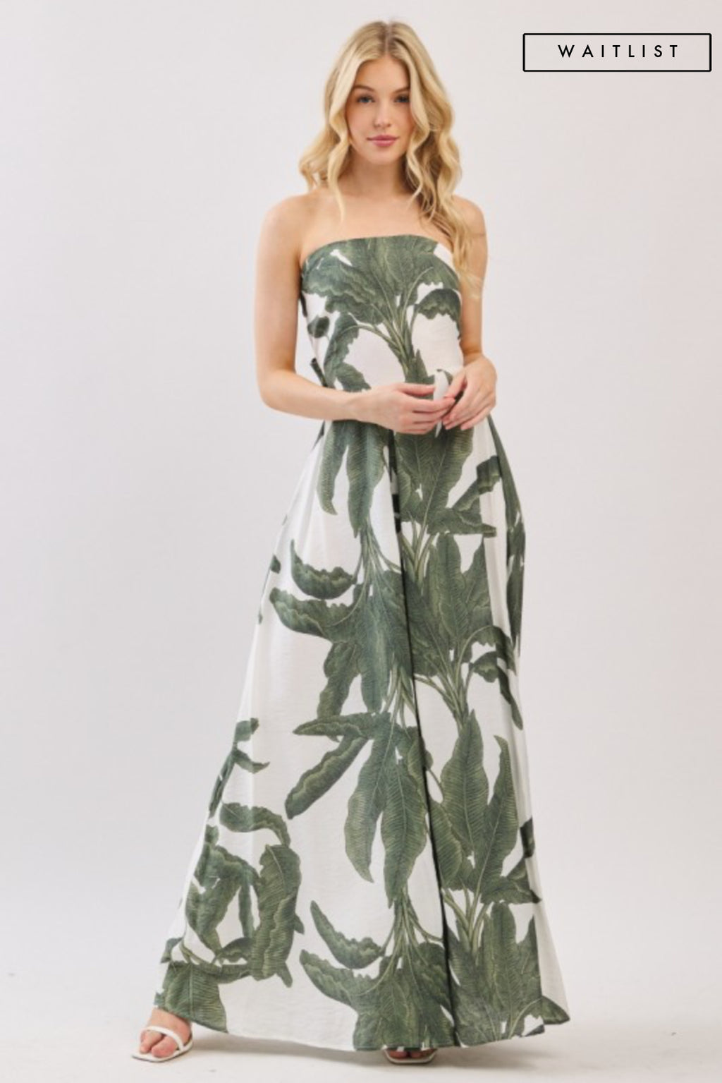 Waitlist 2/2 •Lena Sleeveless Back Tie Tropical Print Wide Leg Jumpsuit Blue