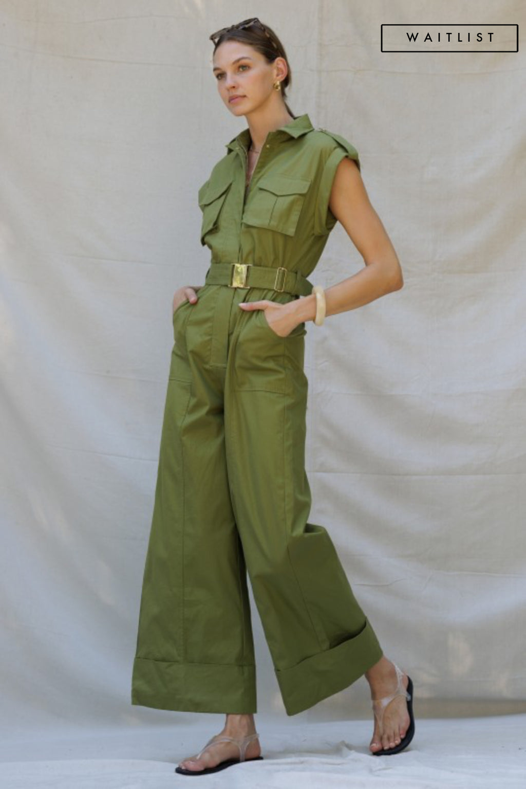 Waitlist 12/22 • Robin Sleeveless Belted Wide Leg Jumpsuit Green