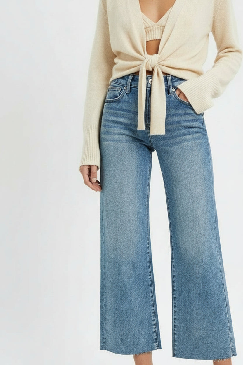 Tatiana High Rise Cropped Wide Leg Jeans Medium Wash