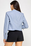 Long Sleeve Side Tie Oversized Denim Jacket Dark Wash