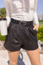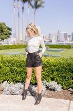 Hayden High Waist Faux Suede Wrap Mini Skort Black