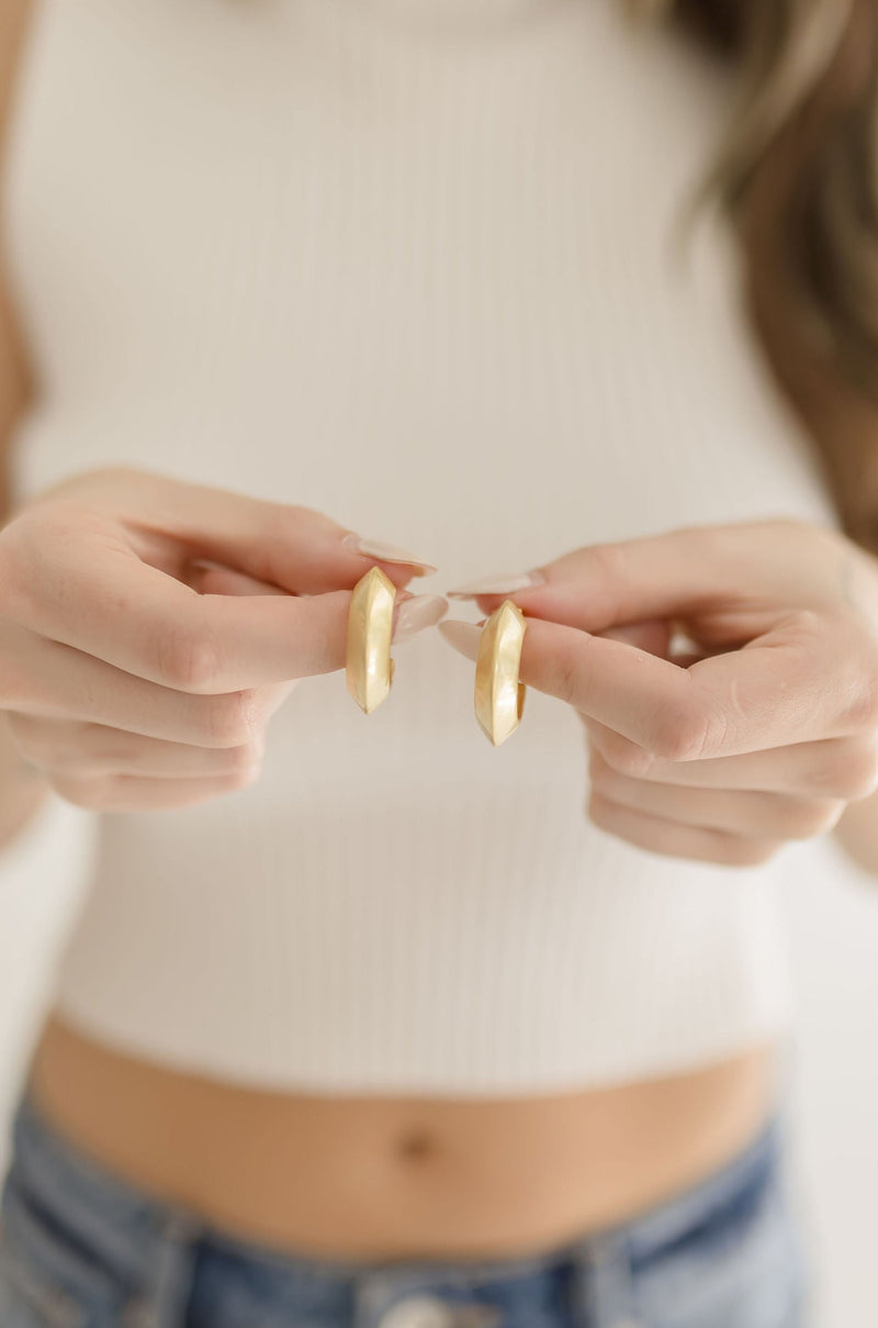 Add the stellar Carly Hoops to your wardrobe rotation and keep up with the latest trends. These adorable earrings have a thick semi-round shape and a post backing - perfect for sprucing up any outfit!