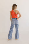 To nail that casual chic look, opt for a sleeveless top in a neutral color like white or black. It's the perfect canvas for experimenting with accessories, whether it's layering a stylish jacket or adding a few statement necklaces.