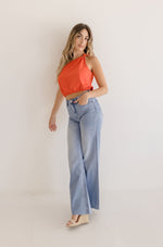 Bella Sleeveless Halter Satin Top Navy