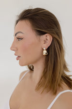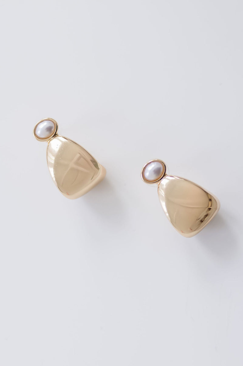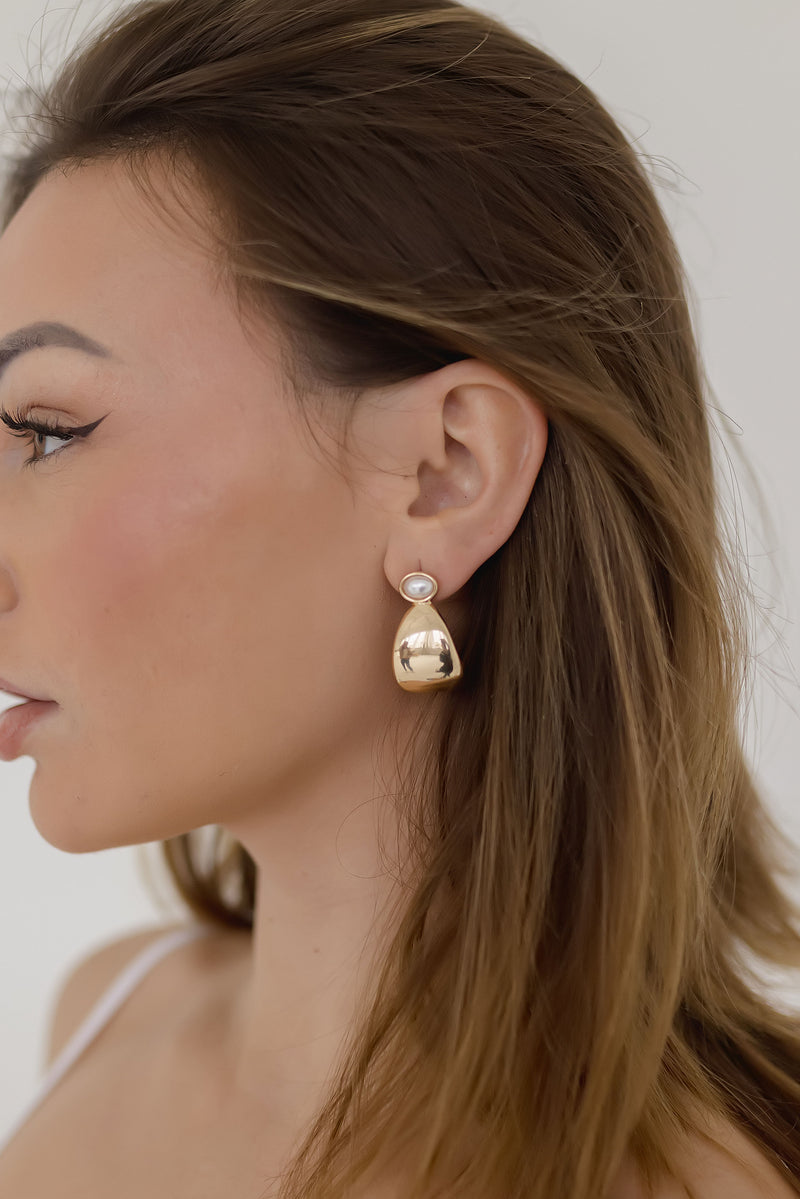 Made of shiny gold, the Danielle earrings feature a unique pearl teardrop design with a fun curved detail. Perfect for any summer look, these earrings are a staple for adding some flair to your outfit.