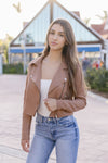 Thalia Long Sleeve Vegan Leather Bomber Jacket Pink