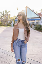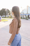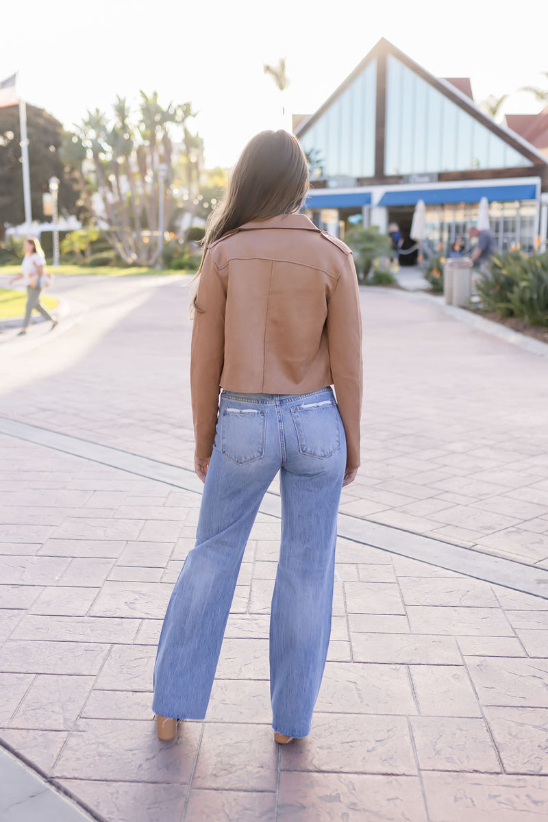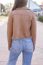 Long Sleeve Vegan Leather Waist Tie Jacket Brown