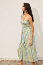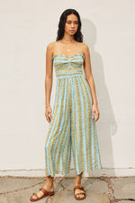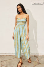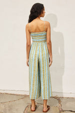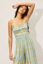 Waitlist 2/2 •Lena Sleeveless Back Tie Tropical Print Wide Leg Jumpsuit Blue