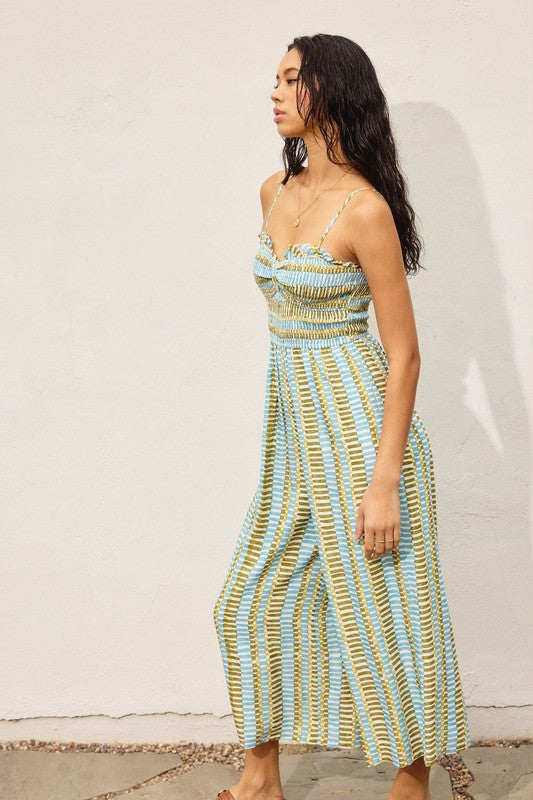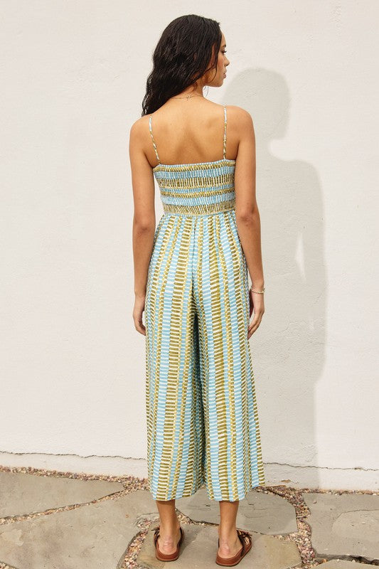 Waitlist 1/25 • Mercedes Sleeveless Abstract Print Wide Leg Jumpsuit Olive