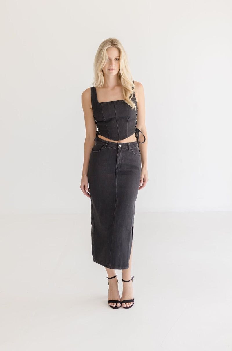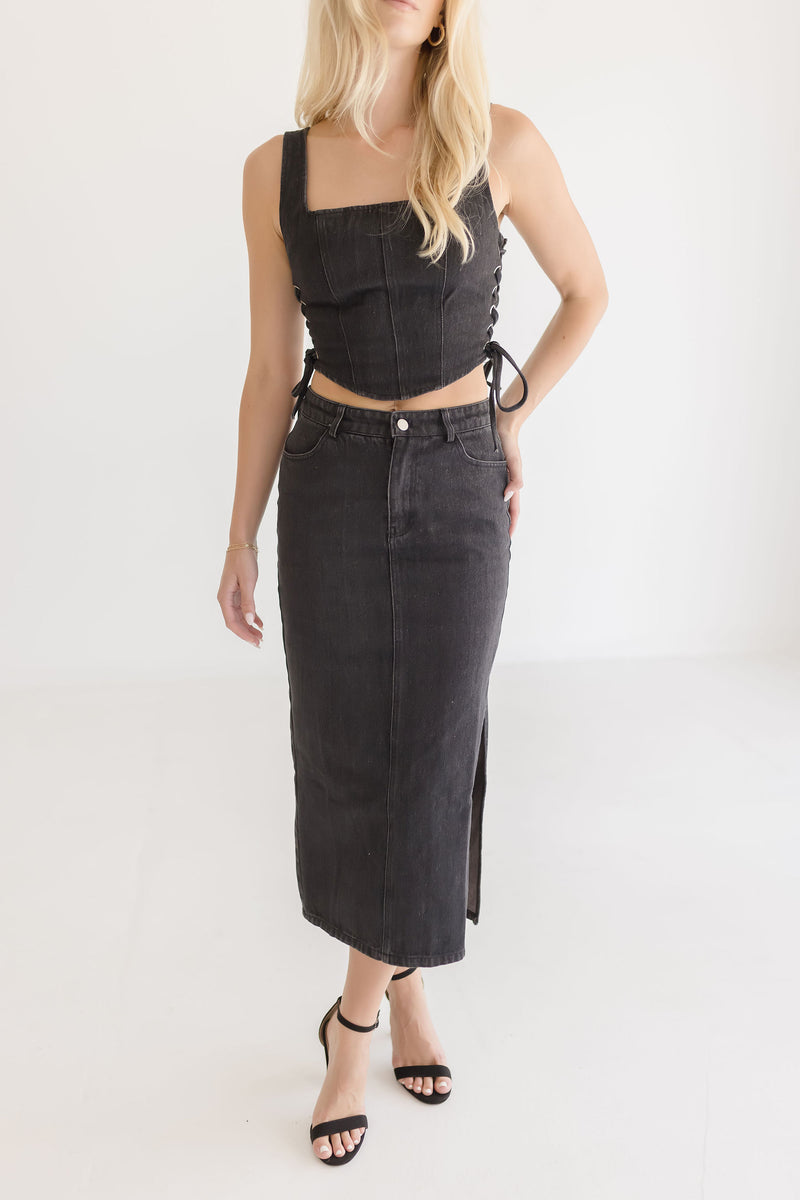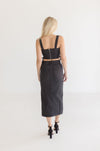 Sleeveless Scalloped Front Tie Top And High Waist Maxi Skirt Set Black