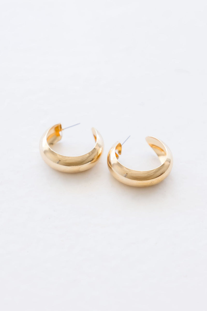 Complete your outfit with the stylish and versatile Jenna earrings. These lightweight gold hoops feature a post backing for easy wear and a chunky design for a trendy look.