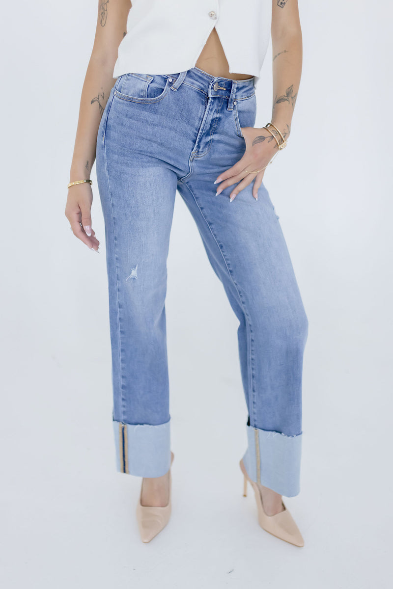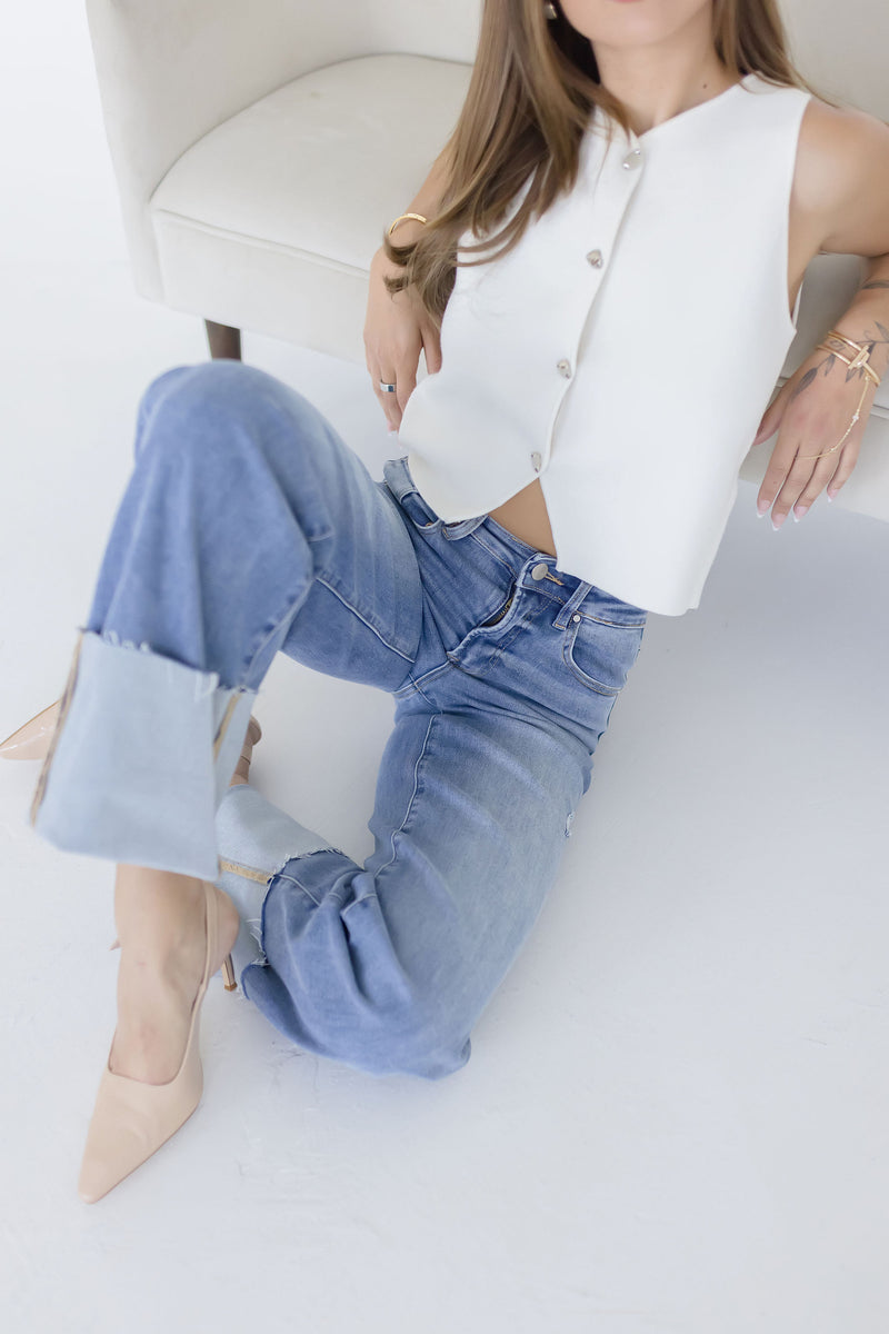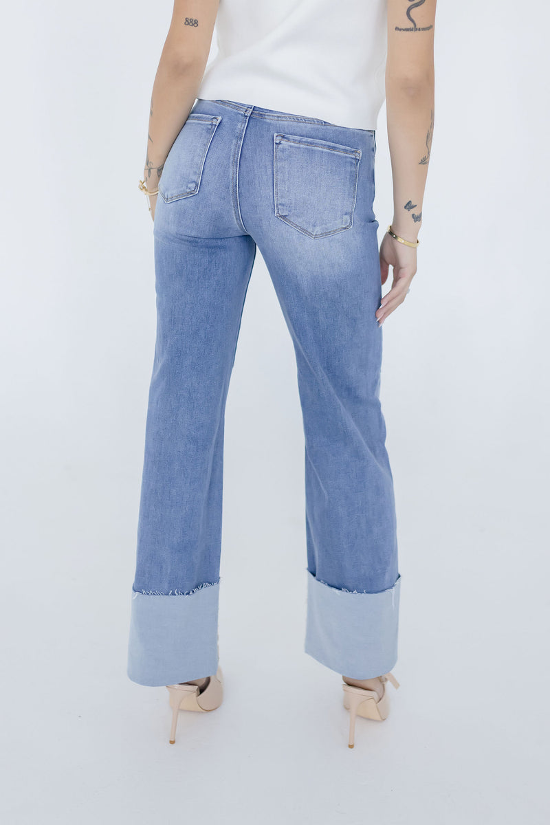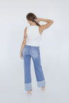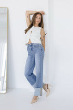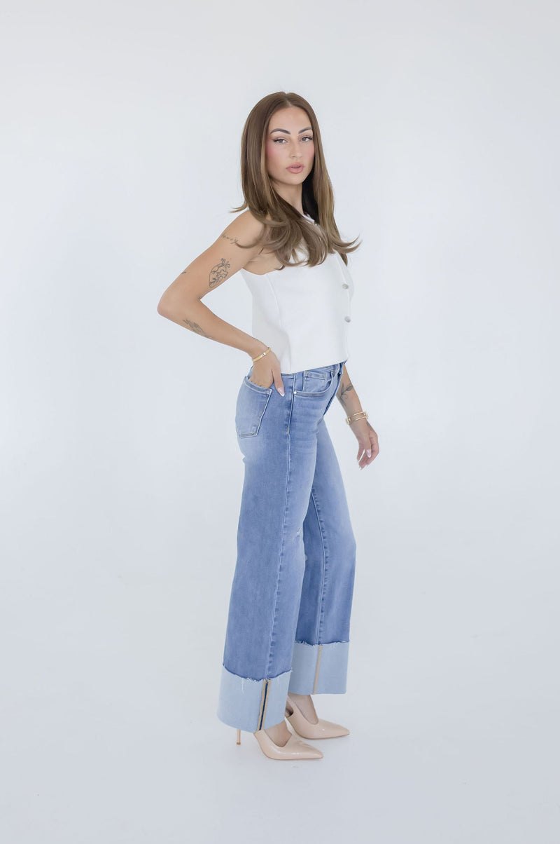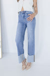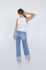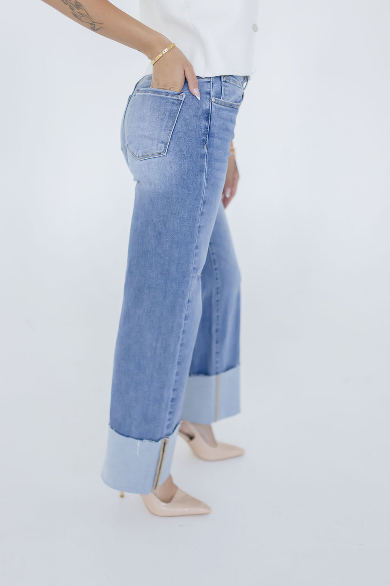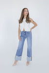 Leah High Rise Wide Leg Cuffed Jeans Medium Wash