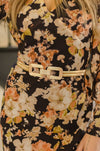 Elyse Faux Suede Rectangle Buckle Belt Brown