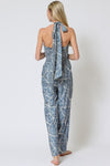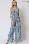 Waitlist 2/2 •Lena Sleeveless Back Tie Tropical Print Wide Leg Jumpsuit Blue