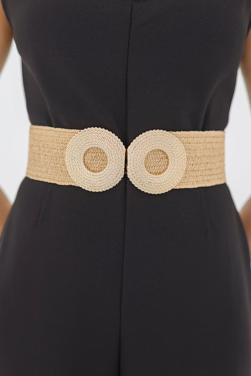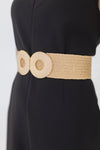 Tessa Gold Buckle Straw Waist Belt Taupe