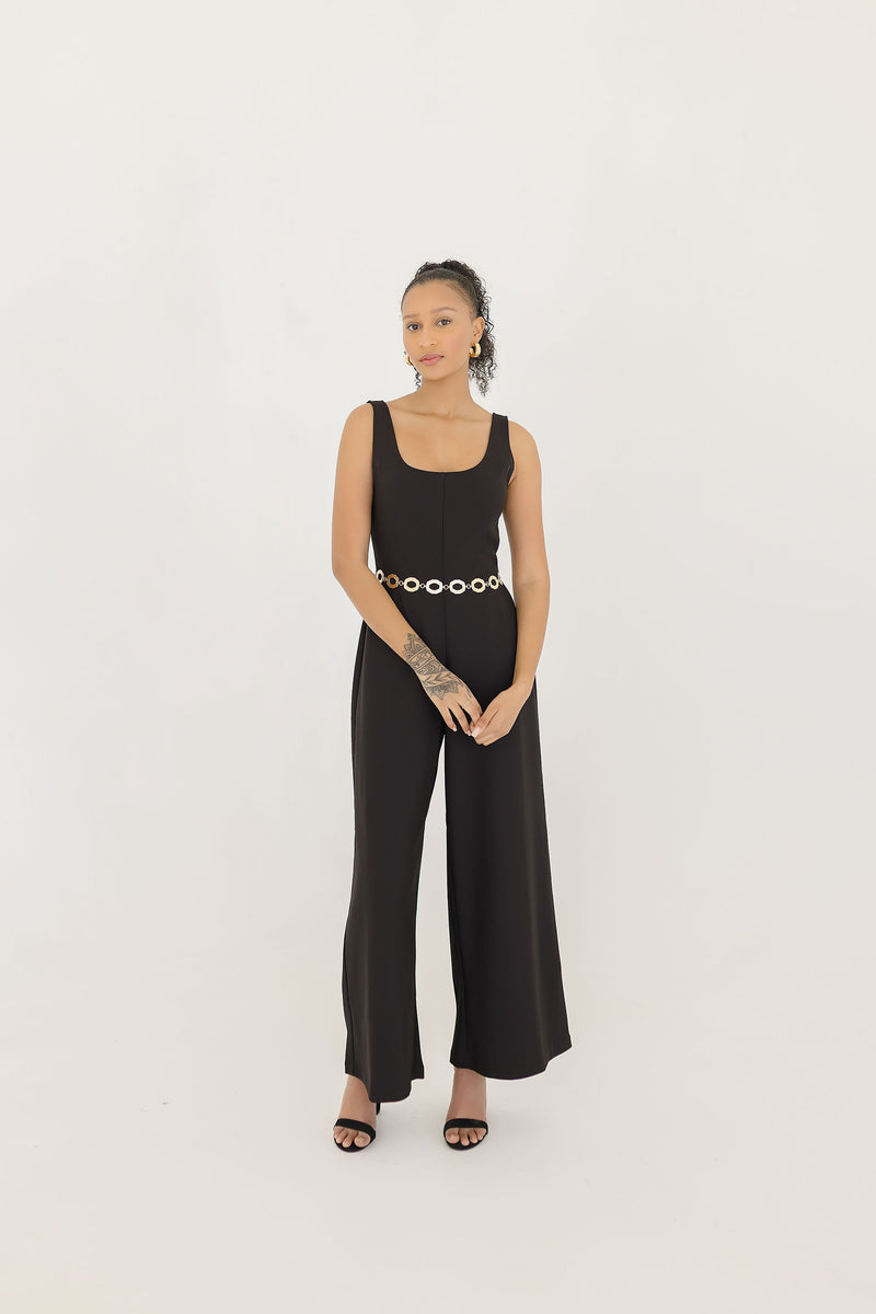 Julia Square Metal Buckle Vegan Leather Belt Black