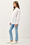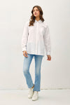 Isla Long Sleeve Button Down Embroidered Lace Trim Top White