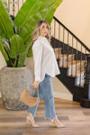 Waitlist 2/25 • Dorian Short Sleeve Button Down Cut Out Top Ivory