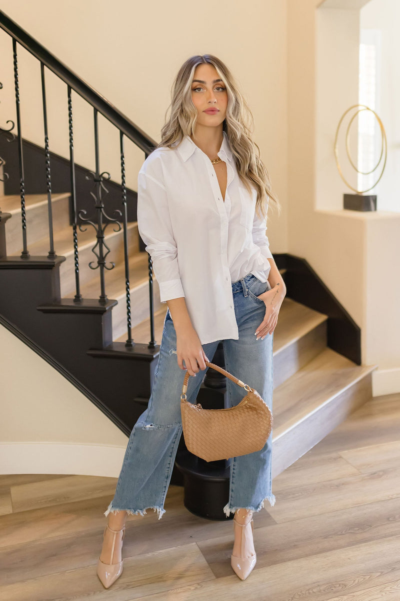 Waitlist 12/17 • Cadence Long Puff Sleeve Button Down Scalloped Top White